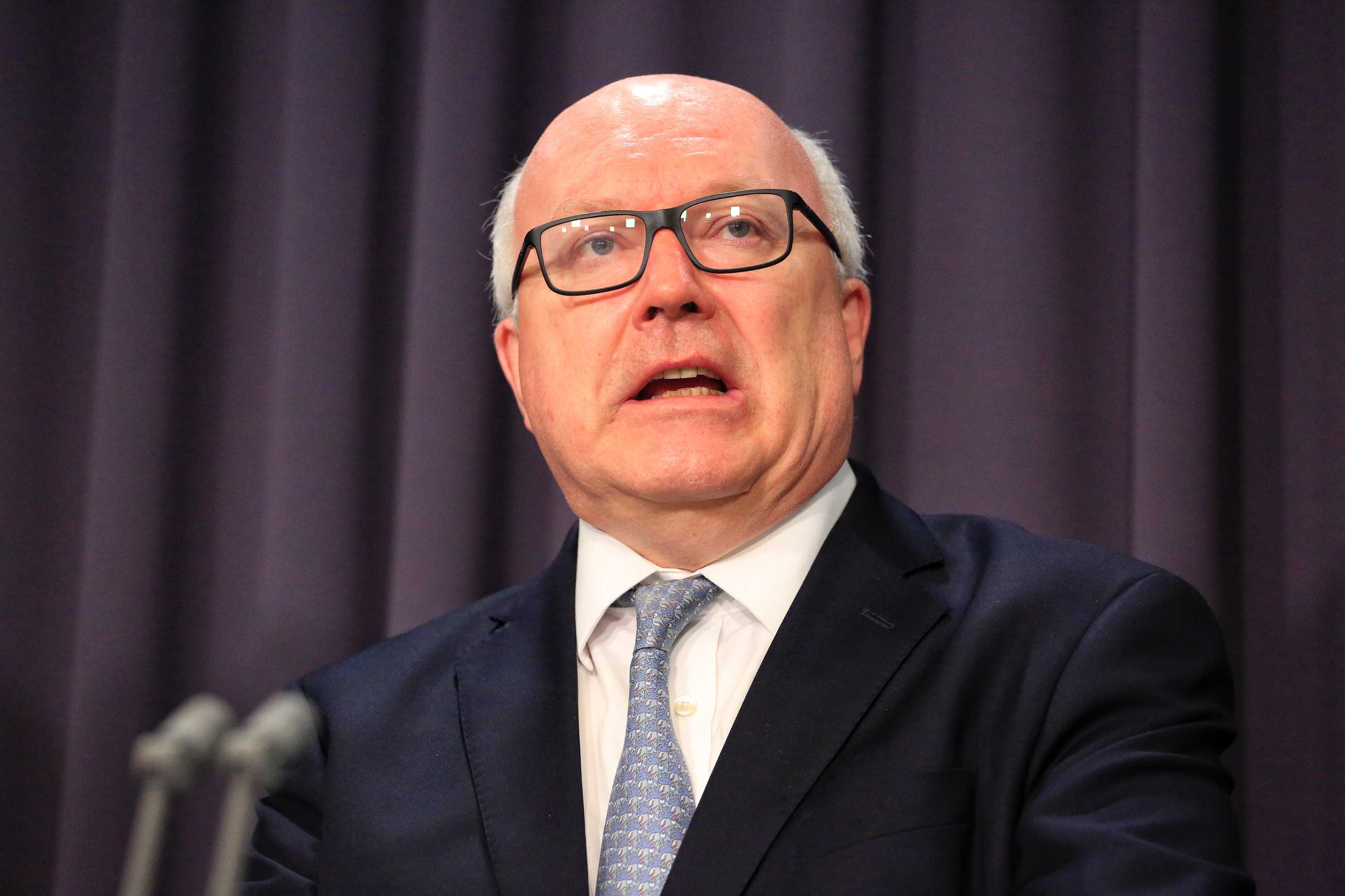 Description: George Brandis, who is now a professor of national security at the Australian National University, s...