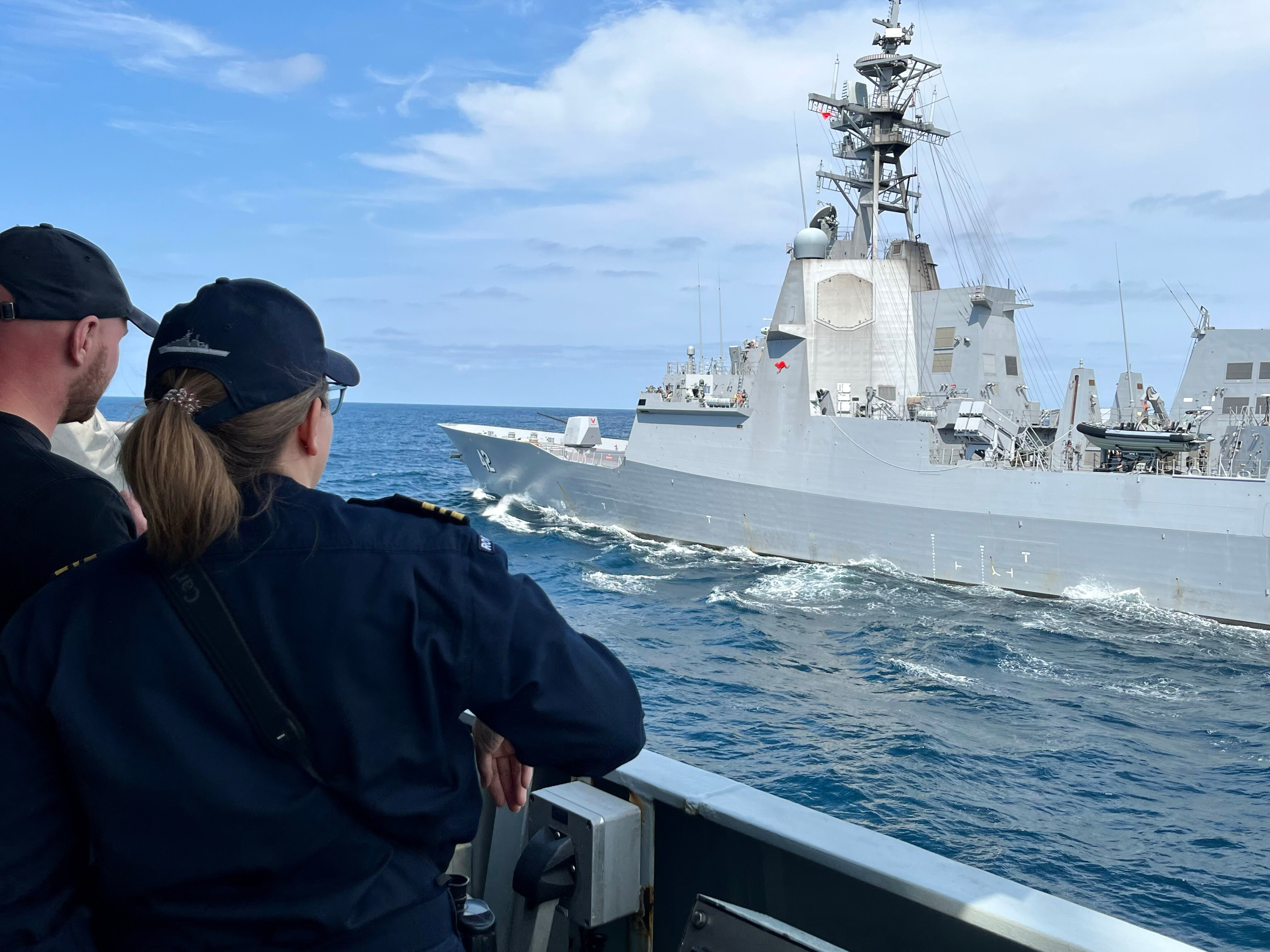 Description: An Australian naval destroyer has joined a British patrol vessel to conduct a freedom of navigation ...