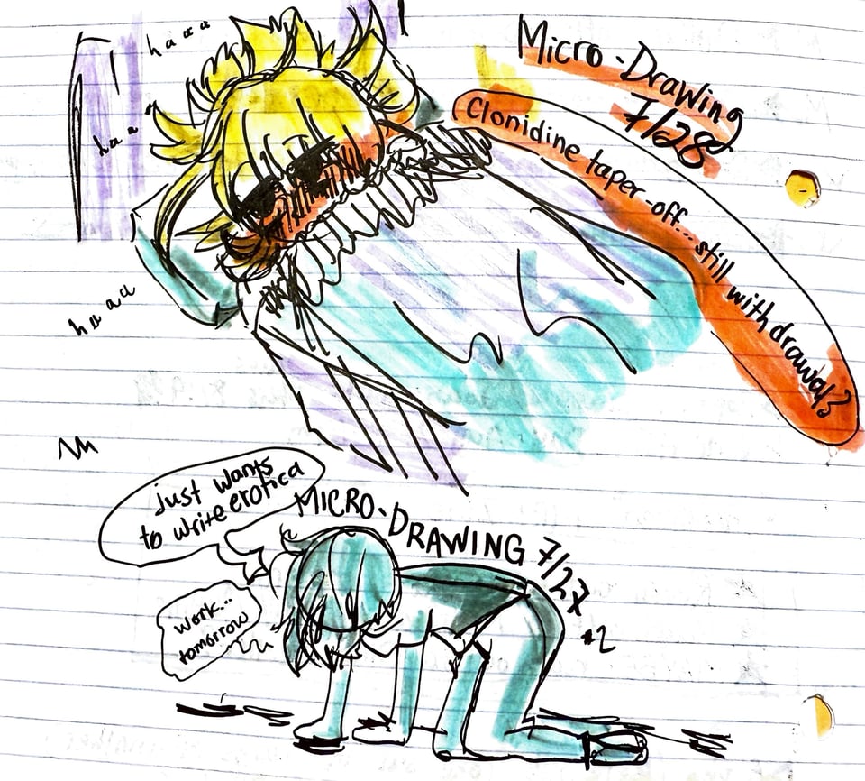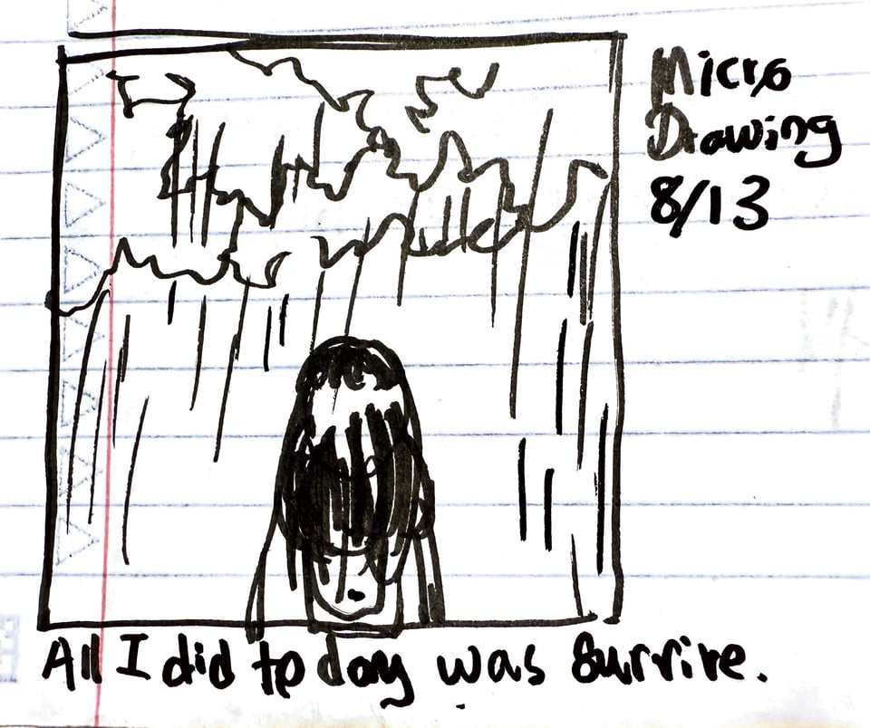 The following drawings show a fair bit of the more mental health side of Micro Drawings. Sometimes you just have a really shit day and don’t want to write or talk about it, but tracking your mental health (especially when you realize triggers or symptoms have patterns.)