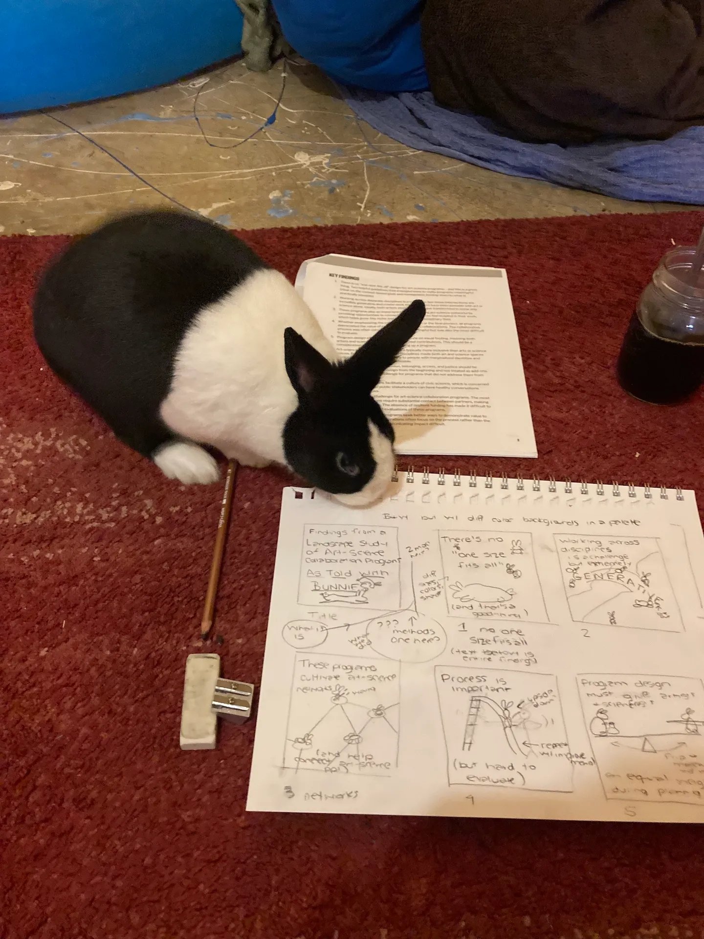 In the comic, bunnies present the findings from a landscape report on art-science collaboration programs.