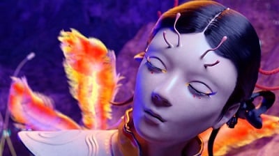 Set in an alien biosphere, Jomon "weaves a tale of a profound ritual where different living beings come to life, led by the guiding hand of a shamanic Hatis Noit... Jomon emerges as a myth, where the spiritual and natural worlds converge in a captivating celebration of life and death." The animation and character design by NAOWAO are otherworldly and captivating; the music is intricate and haunting.