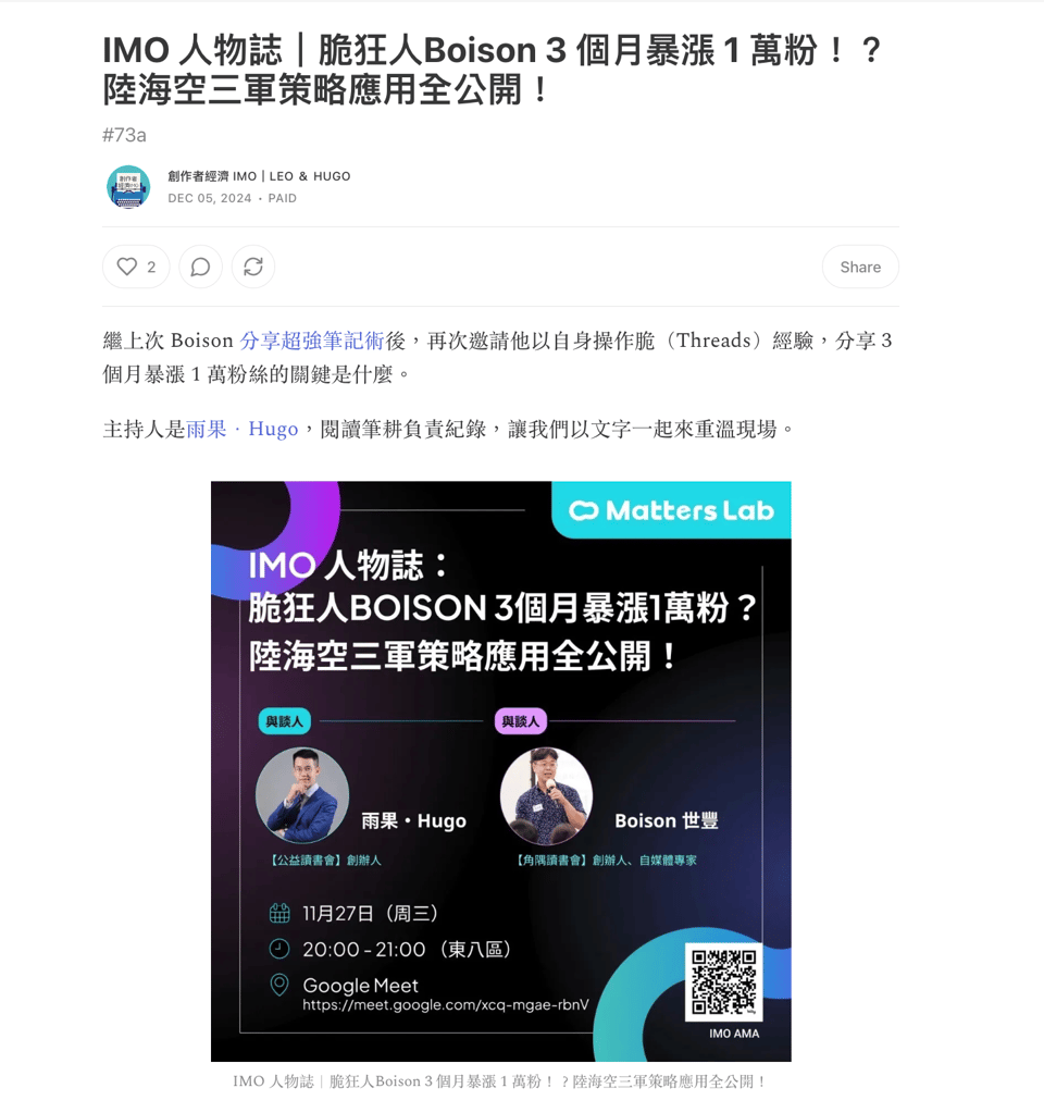 這是我最近上朋友 IMO 電子報節目受訪的文章,裡面也寫了很多精華。