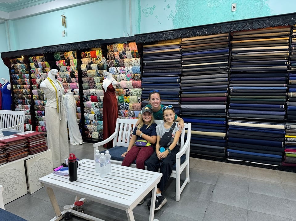 I also indulged in one of the town’s signature industries: custom tailoring. On this trip we are frequently outdoors in the heat visiting sites that require dressing modestly, so it’s helpful to have long but lightweight pants. I’ve been putting off purchasing any new clothing for several countries so that I could find something in Vietnam, and having something custom-made for me was a fun experience! The tailor shops in Hoi An can make what you need in 24 hours, so I was able to describe my ideal pants, pick out fabrics, try on the final product and get minor alterations in the day and a half we had in town. Amazing!