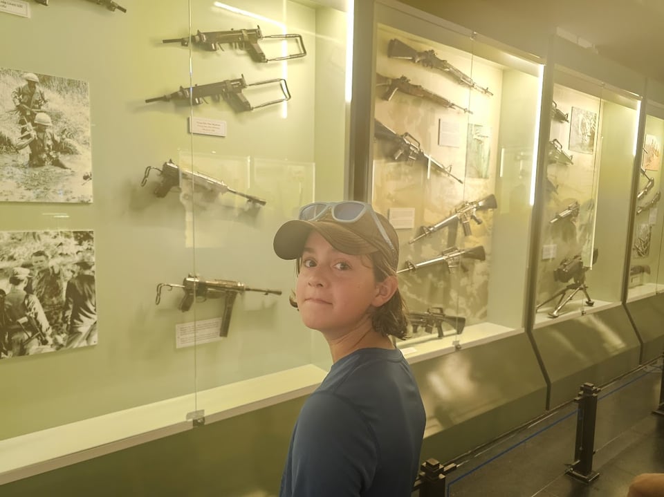 Moving down one floor, the next exhibit is dedicated to war crimes. Again, the tilt in the narrative is obvious, but the truth in the pictures and story are hard to witness. This room was no-holds-barred, and showed some of the worst moments of the war. This included the massacre at My Lai, where U.S. GIs murdered an entire town in an effort to clear any possible enemies. This included children, and these pictures were particularly hard to look at, with my own children in the building. James went through the entire exhibit, but we warned Abby and she rightfully bypassed this floor. The exhibit ended with a display of the various weapons used during the war, which was a welcome respite from the images of the damage these weapons can have on people. The final exhibit in the building was the lasting consequences of Agent Orange. Seeing the various genetic impacts that have been seen in subsequent generations is a searing message of how lasting the effects of war can be.