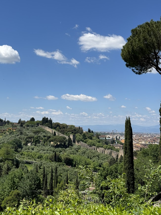 Friday was a relaxing day. We took a drive up to Piazza Michelangelo, which has a wonderful view of Florence. We admired the city for a while, then we went to a beautiful nearby Iris Garden. (Which was apparently founded by Flaminia Specht! I wonder if we’re related to her.) After sitting at benches and sneezing from the pollen, we headed to see an old church and cemetery. Then we went to collect the cars, where we found that we had gotten tickets. When we parked, somebody who was leaving told us that we didn’t have to pay, and we didn’t see a meter to pay at. But when we came back we found the parking meter… and the tickets. (We never should have listened to them!) After a short drive back to the Airbnb, we all had a little lunch and took some time to hang out, snuggle, and pack.