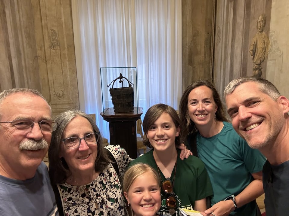 Saturday was a travel day. We were heading from Bagno a Ripoli to Ferrara, with one stop in between. We stuffed our bags into the cars early in the morning and left on a road trip to Modena, which is just outside Bologna. In Modena, we saw the famous (to us) old bucket on display. This bucket has quite the story to tell - James will tell you about that!😉 We also had a delicious lunch and a nice walk around the city. Afterwards, we headed back to the car and set off for Ferrara. In about an hour, we got to our destination and settled in for an evening of preparing for Mother’s Day and making pasta.
