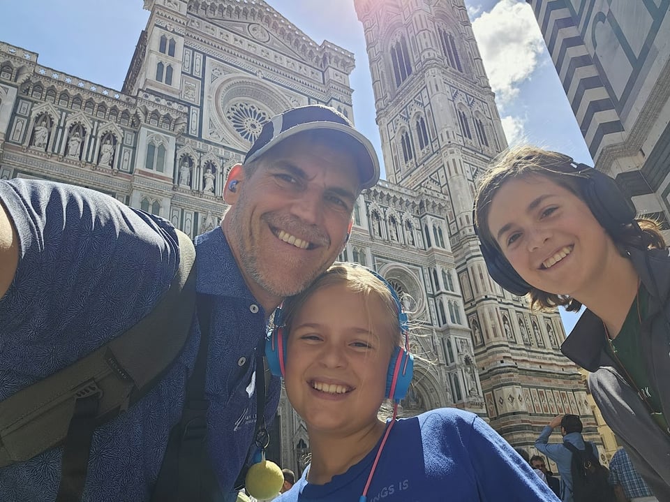Wednesday, we took a day trip to the famed city of Florence. First, we took a walk through the city with a Rick Steves audio guide leading us. The tour included Florence’s duomo, topped by Brunelleschi’s Dome. We admired the work of this beautiful cathedral for a while before we continued walking. We got to see lots of statues of famous painters, sculptors, knights, mythological heroes and more in the many piazzas - especially Piazza Signoria and Palazzo Vecchio. Afterwards, we grabbed a quick lunch before getting in a huge line for one of the most famous museums in the world - the Uffizi Gallery. There were many, many works, featuring artists like Boticelli, Michelangelo, Rafael, and da Vinci. We marveled at the masterpiece paintings and statues that we have only seen in pictures. (Dad had to leave for work in the middle of the visit, so there were only five of us by the end.) We finally finished! …The top floor. The museum was humongous! We all decided to only do the one floor because just that had taken so long. We headed out to get some gelato that we brought with us for a little stroll along the streets.