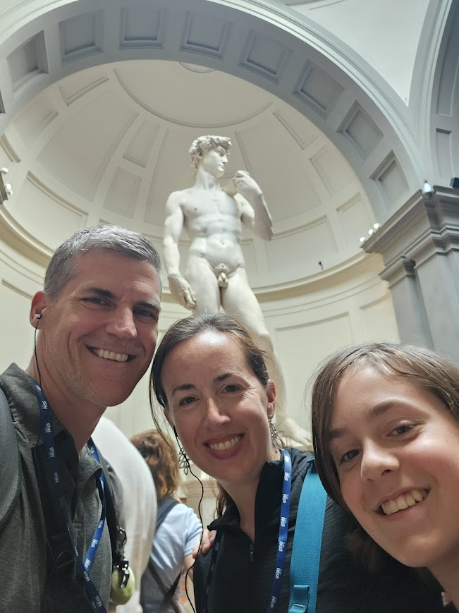Thursday, we saw the world-famous statue of David, by Michelangelo. Before heading to the museum, we sat down for a pasta-pizza lunch. (Italian food never fails us!) We slowly made our way to the meeting point for our tour. After meeting up with the tour guide, we got in the huge line for the Accademia Gallery. Finally, we got in. Seeing the statue of David is really cool, because I’ve been seeing pictures of him all my life, and to see it in person and see how big it really is is very awe-inspiring. We admired the statues and paintings for a while, and even hopped into the Musical Instruments section of the museum where we found out that a Hurdy-Gurdy is an instrument! 😆