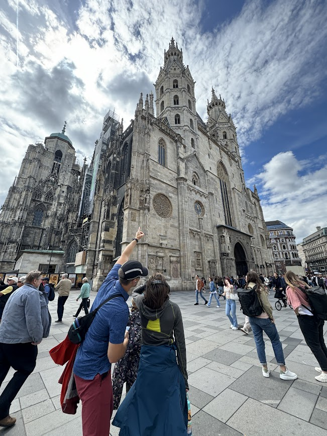 We thought it would be a good idea to start our first full day in Vienna with a walking tour, so once again we packed up our headphones and downloaded a Rick Steves guided walk. As usual, we made some spontaneous stops along the way, but we learned a lot about the city and were able to see the Opera House, Sacher Cafe (of Sachertorte fame), the Albertina Museum, Vienna’s Cathedral, St. Peter’s Church, some famous public bathrooms (yes, really), the Hofburg Palace with its many buildings, and more. We rewarded ourselves for our efforts by picking up treats at Demel Bakery, a local bakery and cafe legendary for having been the place where Empress Elizabeth (affectionately known as Sisi) ordered all of her chocolates. It was an endorsement we couldn’t resist!
