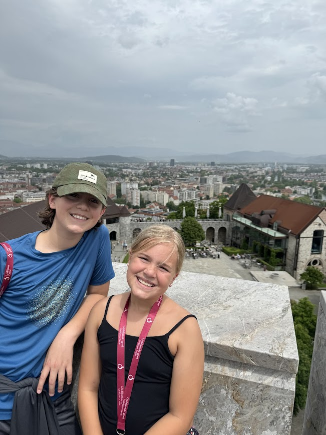 On Monday we explored the main attraction in town, Ljubljana Castle, perched high on a hill above the Old Town. The castle was interesting, and we enjoyed learning more about its history and the history of the town. The tower offered a terrific view of Ljubljana, and on clear days it is said that you can see almost a third of the entire country. After walking back down the hill we had a late lunch and enjoyed getting to explore the town a bit more when everything was actually open. I found Ljubljana to be charming and very livable. It was clear that the locals feel the same way, and it was fun to see how much they enjoyed their town, lingering at the local eateries, biking along the river, or lounging with family and friends along the riverbanks. In the evening, we were lucky to have a chance to sit and chat with our lovely host and her family. Slovenia’s recent history has been interesting and often tumultuous; our host Stasa was able to speak from a personal perspective and we really enjoyed hearing what she had to share.