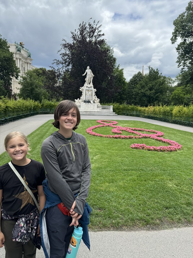 On Tuesday we hugged Stasa goodbye and took a train to Vienna. The trip ended up taking a good chunk of our day, but I was grateful for the down time to make a list of all the things that we might want to do in Vienna. By the time we checked into the hotel it was dinner time, but I discovered that one of the museums on our list was open late, so after eating we decided to head out to the Haus der Musik. Vienna holds a prestigious spot in classical music history, and the museum was a big hit for the whole family. To our delight, in addition to being informative it was surprisingly interactive, with many inventive exhibits. Plus, thanks to the late hours it was significantly less crowded than it would have been during the day. We could have spent more time exploring the offerings there, but by 9pm we were all feeling tired and headed back to the hotel to get ready for bed.