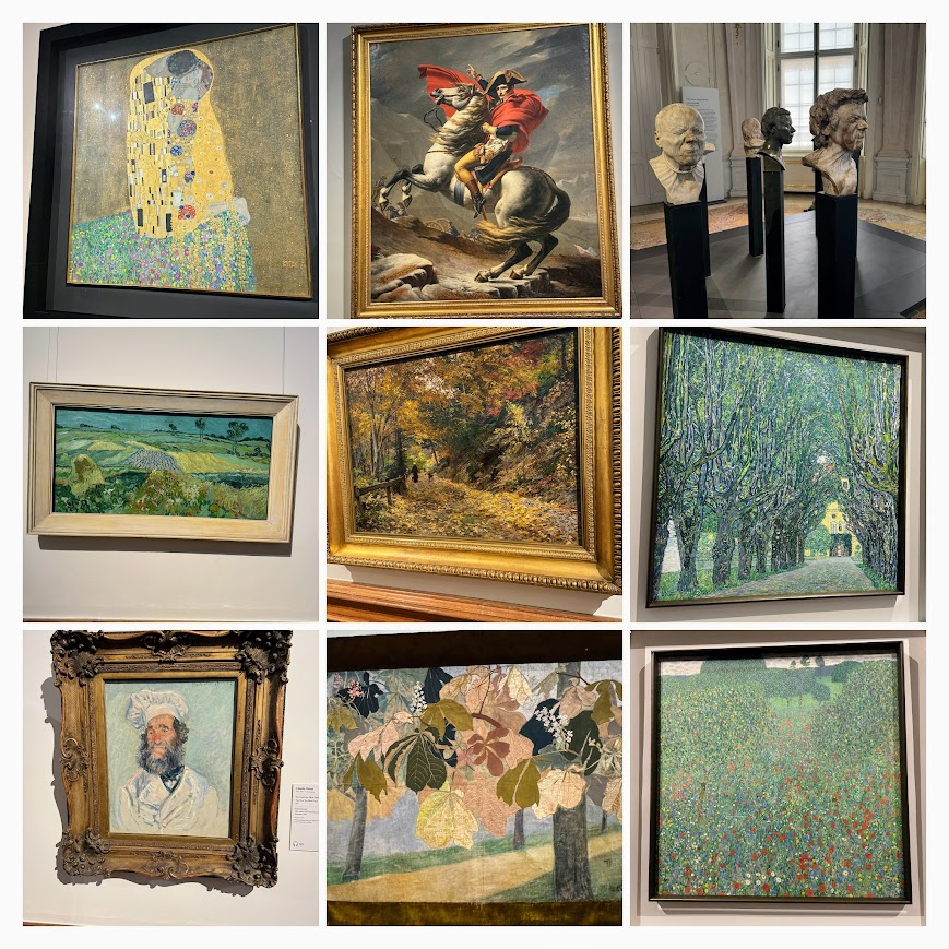 After Schönbrunn Palace we trekked to Schloss Belvedere, an 18th century former palace now broken up into several art museums. Sean was able to join us for Upper Belvedere, which has many interesting works by artists including Monet and Van Gogh, but is especially known for its Klimt collection. I wasn’t very familiar with Gustav Klimt when we visited; I’d only seen a few of his most famous female portraits and knew he was from Austria. I was delighted to find that I enjoyed his work much more than I anticipated and was impressed by his range of styles.