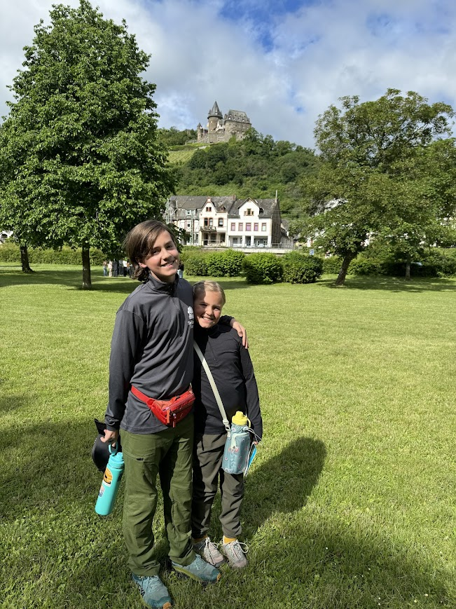 Saturday we wanted to take a Rhine cruise to St. Goar. Caitlin had done some legwork and collected the timetables for the ships, so we were ready to go! We walked down to the pier and discovered… the boats were canceled for the day. It’s unclear why, possibly bad weather, but regardless, back to the car! We drove up to St. Goar and the Burg Rheinfels. This was the largest castle in the area during its prime, but unfortunately the French destroyed most of it when they were forced to retreat in the late 1700s. Still, it was an amazing area and we really enjoyed the echoey cellar, the largest in Europe. We then explored the town briefly, had the kids try Black Forest cake, and then returned back to the hotel. Dinner was a wonderful affair at the hotel and packing to leave for the morning. I’m looking forward to new surprises next week!