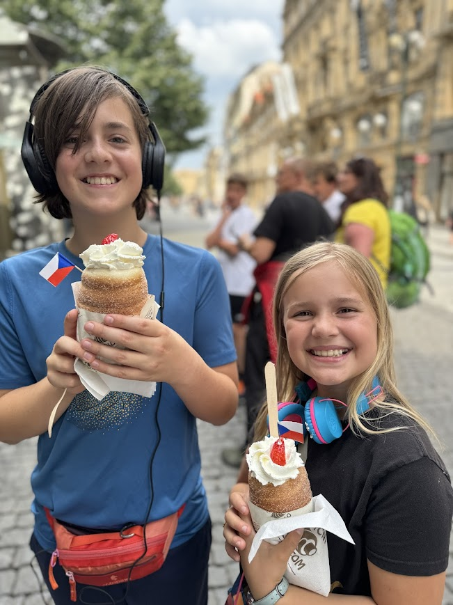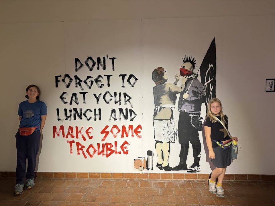 The week started with our first full day in Prague. As has been the custom in Europe, this meant that we did a Rick Steves audio guide! To get to the walk, we needed to go through the Old Town Square. In it, there was a giant screen being erected, whose purpose we couldn’t guess. We continued on towards the start of the tour, when we stumbled upon a Banksy museum. We had discussed this famous graffiti artist briefly with the kids in Ljubljana, as they had a Banksy exhibit at the time, so we decided we should step in. It was a really fascinating way to see all the various pieces Banksy has done over the years, with some quotes attributed to the mysterious artist spread around as well. We all found it very engaging.