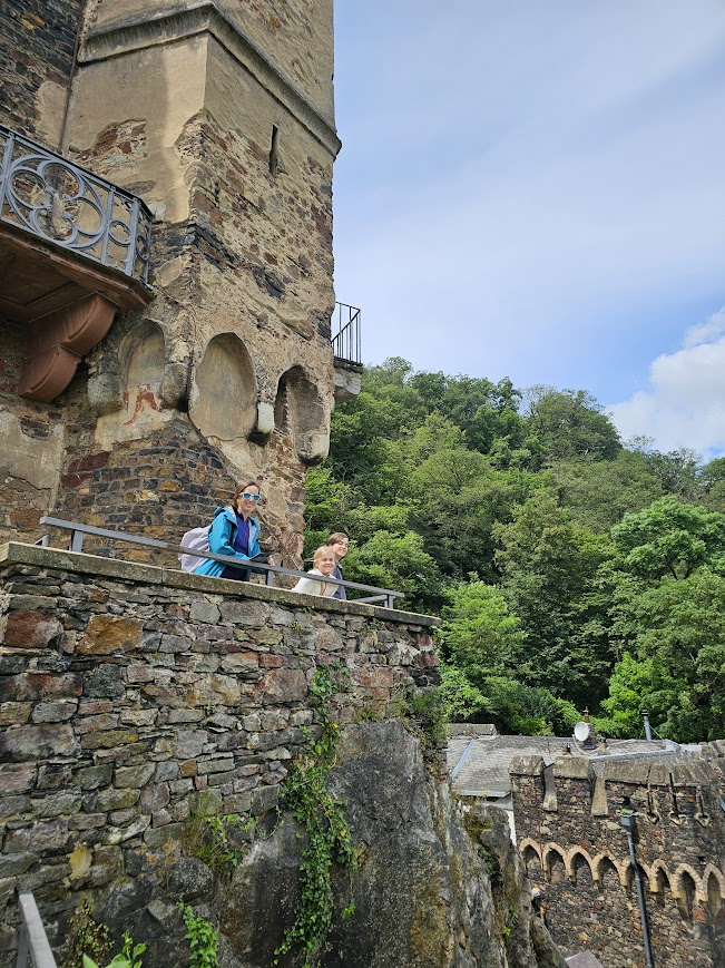 One of the main attractions of the Rhine valley are the numerous castles along the ridges of the valley. Friday we decided it was castle day, and jumped at the chance to take bikes that the hotel owner offered. Unfortunately, they only had full size bikes, and none of them were appropriate for Abby, so it was back to the car! We drove up the river to Rheinstein Castle. This is a castle that has been restored by a family since 1975 and was a beautiful place. Backtracking towards our hotel, we stopped at Burg Sooneck (“burg” is the German word for castle). Here was another pleasant surprise, as they had a treasure hunt for kids. James and Abby both really enjoyed the game and it was an awesome way to explore the castle grounds. After getting our fill of burgs, we returned to Bacharach. I continued to work and Caitlin and the kids did some more exploring. When my work day was done, we went out for dinner and closed out the night.