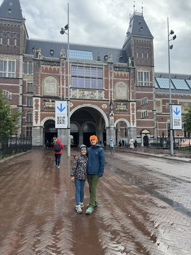 Wednesday began early with Mom, Abby and I going to another museum, the Rijksmuseum, where I broke museum property twice. Don’t worry, I didn’t break any artwork! We were doing a family scavenger hunt, and the special audio unit dropped off the lanyard onto the stairs and stopped working. We went back and exchanged my unit for another one, which lasted for even less time than the first one. I didn’t drop it this time; its electronics just decided to take the day off and the screen froze! It was quite embarrassing having to exchange it again, but luckily the third time was the charm and I didn’t have any problems after that! The Rijksmuseum is massive, and houses everything from swords to ceramics to model battleships to doll houses, not to mention sculptures and paintings. We made sure to see the museum’s famous collection of Rembrandts and Vermeers, but when we had to leave after a few hours we had barely scratched the surface. It really is a big place!