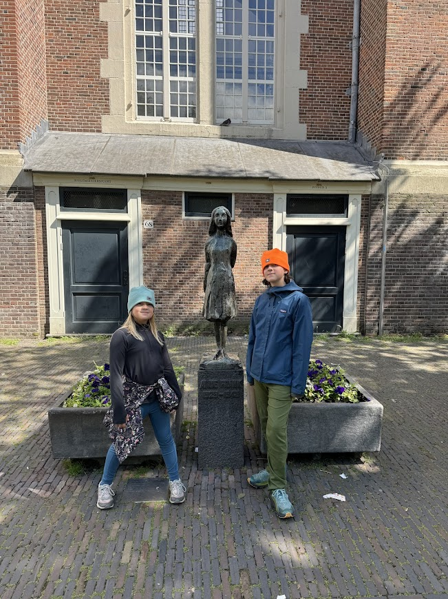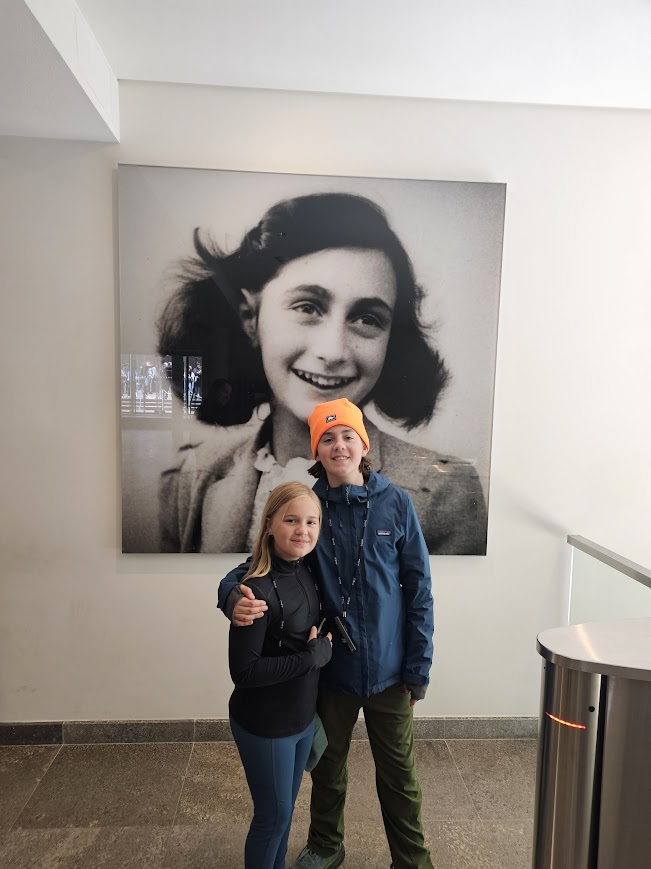 On Tuesday we planned to do a walking tour of the city. On our way to start that, we decided to walk past the Anne Frank House Museum. Mom and Dad had tried to get us tickets earlier, but they were sold out more than a month in advance! By an incredible stroke of luck, Dad checked for tickets one final time and it turned out that there was a last-minute cancellation for a group of six 20 minutes later. We jumped at the chance to get in, bought the tickets, and were able to walk in right past the “SOLD OUT” signs! Abby will write more about the AFHM, but I just want to say that even though I know many of the costs of WWII and have learned about concentration camps, it was still pretty jolting to read about the incredible hardships of her life.