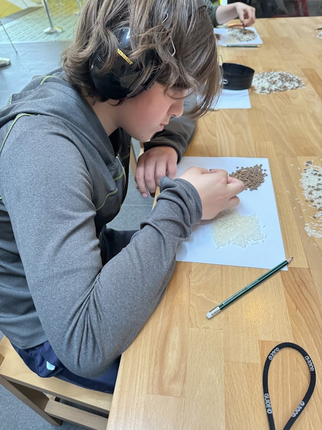 On Monday we had tickets to visit the Stedelijk Museum, which is a modern art museum. It had some very interesting exhibits, including many well-known artists (Mom kept track as we went along: Mondrian, Chagall, Cezanne, Van Gogh, Kandinsky, Matisse, Picasso, Eames, Ernst, Lichtenstein, and Warhol) and some we had never heard of, like a Romanian artist named Anna Lupas who defied her communist dictators through art. I also really liked their Light Lab Exhibit, where we played with mirrors to create optical illusions and used spinning lights to make our shadows dance on the walls. Surprisingly, when we thought we were done Abby, Mom, and I got absorbed in an interactive project with lentils and rice. Dad had meetings at dinnertime, but the rest of us ate at a yummy Mediterranean restaurant until our stomachs were ready to explode.