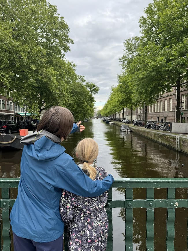 Our morning at the museum was followed by… an afternoon at another museum! We had tickets for the whole family to visit the Van Gogh museum, which tells the story of the famous Dutch painter and houses some of his most famous paintings. I recognized ones like Sunflowers, The Potato Eaters, and The Bedroom. It had some truly interesting stuff. I enjoyed learning about Van Gogh’s motivations, like how he painted common people because he thought that they worked hard and deserved more respect. He thought he was more like the peasants and farmers than the upper class, and I read that he enjoyed working on simple themes because he connected with them. After that, we headed back to the hotel, but Mom said that going to Amsterdam without biking would be a crime. Dad had to work, but the rest of us rented some bikes and went for an hour-long spin around a beautiful park.