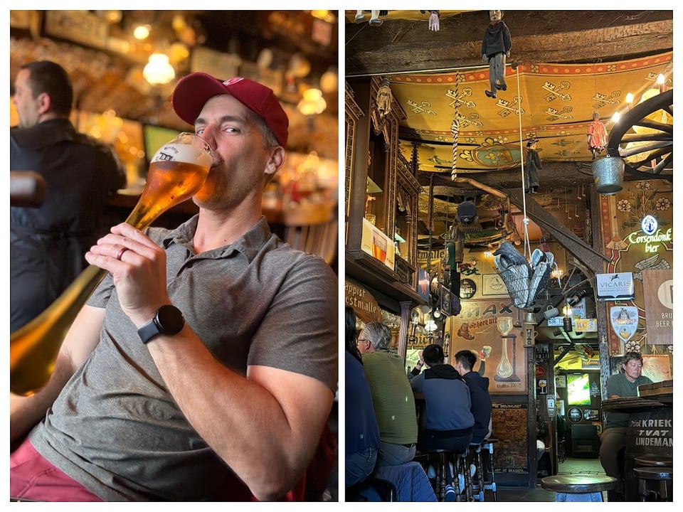To end our whirlwind tour of Ghent, we stopped at a local establishment that is known for serving over 500 Belgian beers. The bar is called Dulle Griet, and it’s a relatively small pub off the Vrijdagmarkt, where the statue of Jacob van Artevelde stands to guide patrons to the good beers of Belgium. The reason the Dulle Griet is a must-stop attraction isn’t for the quantity of beers, but for the barter you must do for one of them. Their MAX beer is served in a unique glass, and as many were “wandering off,” they decided to require a collateral. They chose: one shoe. That’s right, to order the MAX beer from the Dulle Griet, you had to give them a shoe, which will be returned once you give them the glass back. This perfectly captures the slightly ridiculous side of Ghent that made me fall in love with it.