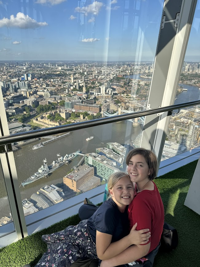 Thursday was a marathon! Sean left early to meet colleagues at his company’s London office. The kids and I headed out with vague plans to visit a few spots and return for more the next day, but somehow once we got rolling we couldn’t stop! We took the Tube to Buckingham Palace, then spent some time meandering and relaxing on the grass at Saint James’s Park. Then we headed to Trafalgar Square, which was mostly obstructed by construction fencing - boo! We had a fun lunch nearby, then marched on past the Horse Guards and Downing Street on our way to see Big Ben, Westminster Abbey, and the Houses of Parliament. Still feeling good, we decided to walk across Westminster Bridge and make our way along the southern bank of the Thames. We passed the London Eye but were deterred by the massive lines and our plans for another height-based attraction later. We enjoyed being able to stop at fun spots like a book market and a few shops as we made our way towards The Shard, where we were meeting Sean at 6pm.Â