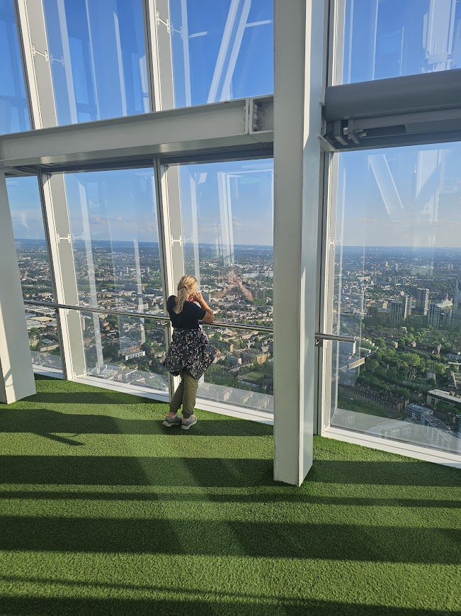 Aside from Romeo, one thing I remembered well from our first trip was the special telescopes that allowed me to locate famous landmarks and identify them on the screen. Unfortunately, the telescopes have been removed. Instead, The Shard now employs special London Experts to talk about the building and London’s city history with visitors. We asked one of them a few questions, and that turned out to be a wonderful idea. Michael, our expert, was full of interesting stories. For example, he told us that the cannons of the HMS Belfast, a light cruiser that saw heavy action in WWII, were positioned by the engineers who restored it so that if they were fired the shells would hit their hotel, which had served them some questionable food that gave them all terrible diarrhea. You don’t read that kind of story in a history book! Michael also told us about The Shard’s special bathrooms, where the stalls have floor to ceiling windows that overlook the city. It’s apparently a very popular filming spot for people who want to post videos on social media. Luckily, they have shades that can be lowered for people who aren’t comfortable with a huge window next to them as they use the bathroom. 🚽🤣