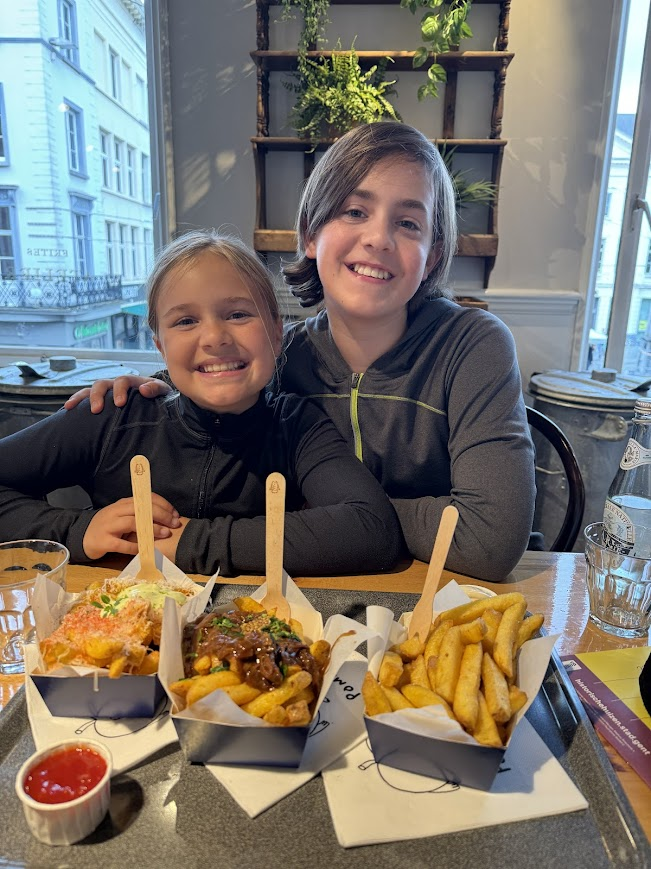 On Monday we had to move on, but we took the morning for a bit more walking in town and a canal tour. Before leaving we had fries (yep. again.) and waffles before heading back to the hotel for our bags and catching a train to Brussels. We had just enough time to settle in at our hotel, head out for dinner, and take a short stroll before heading back to the hotel to work on the newsletter and head to bed.
