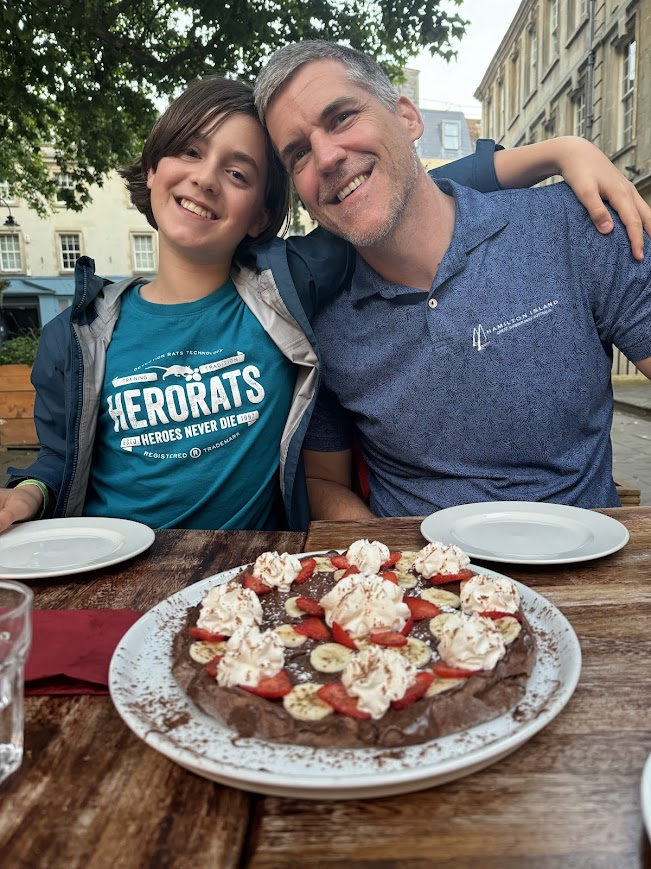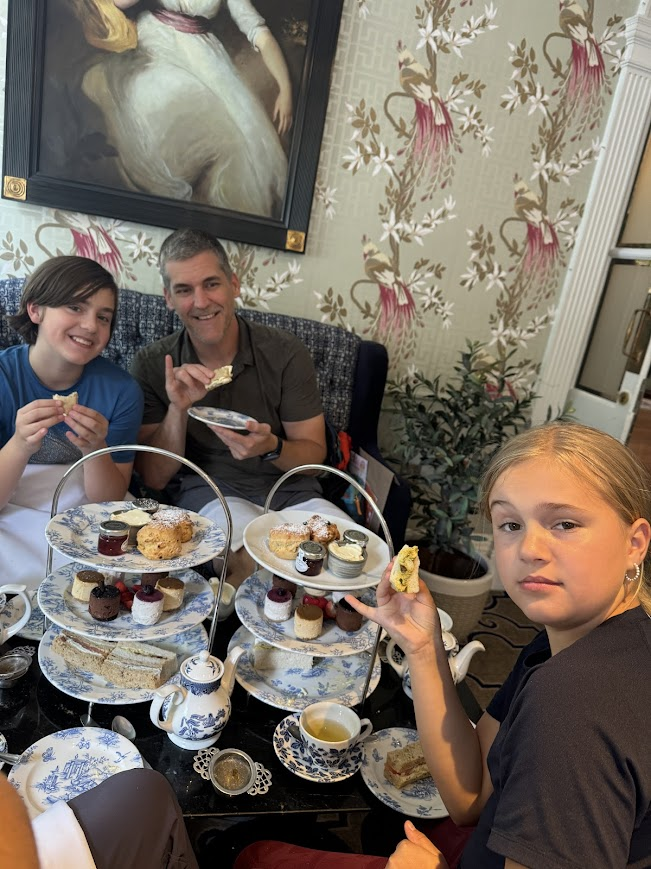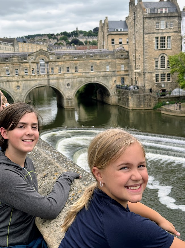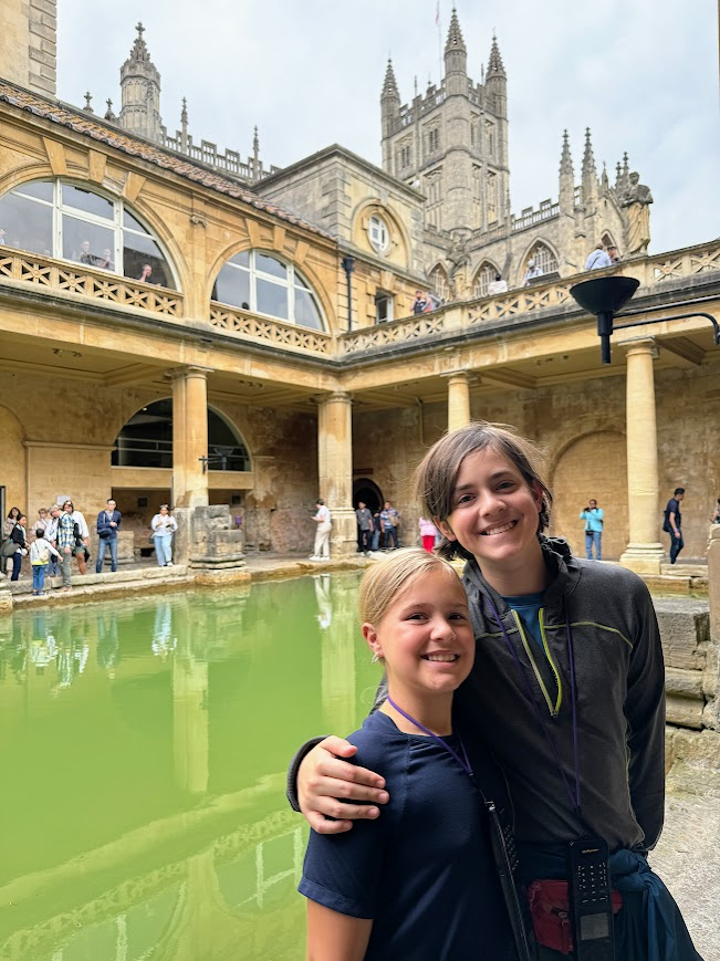 On Monday morning we made our way into town to see what the city was named after, the Roman Baths. It turns out the only hot spring in Britain is here, and it’s why the Romans built up a sizable city. Romans from all over the empire appear to have made trips to the healing warm waters of the spring. Once we finished the tour of the baths, I split off to meet up with a coworker who lived nearby, and Caitlin and the kids walked the town. We met up later to have high tea! I unfortunately showed up a bit late, and had to leave early, but it was still a fun experience with the finger sandwiches and scones. After that, I was working the rest of the night, but Caitlin and the kids found their way to a wonderful bookstore called Mr. B’s Emporium of Reading Delights. After that was dinner and lights out.