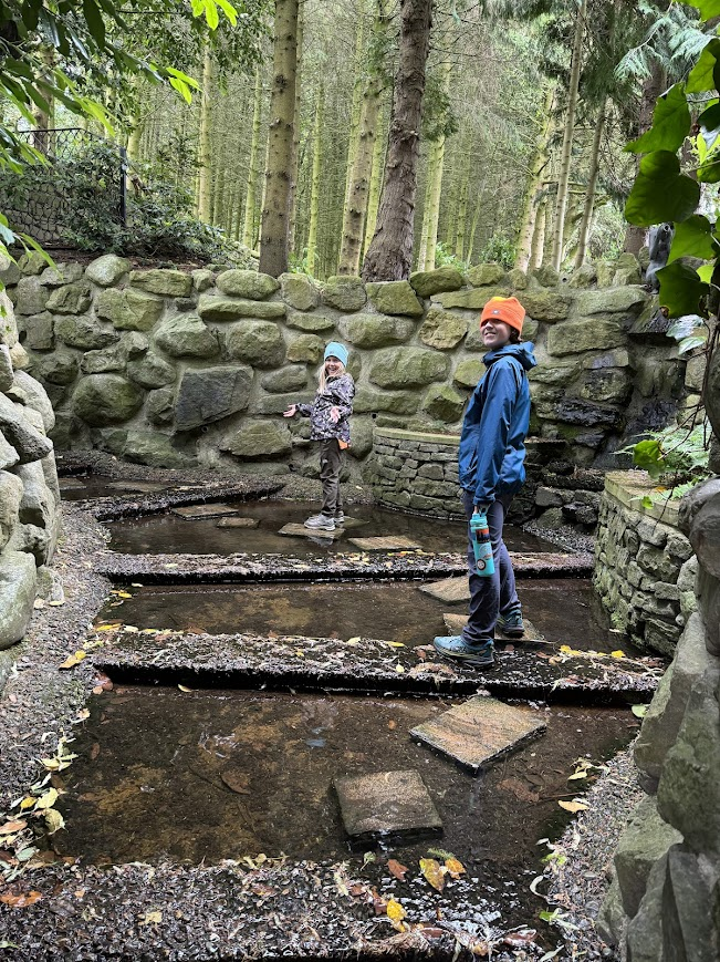 Friday was a pure work day for me, spending the whole day in the cottage getting caught up on various things. Caitlin and the kids made their way out for lunch at a special cafe (see James’ section below) then to a location called the Forbidden Corner. This was a maze-like mashup of various oddities that the family made their way through. For instance, there was a giant mouth to walk through and a stockade to take a picture in. Once they successfully left the maze, a trip to the grocery store scored a wide selection of local sausages that we tried for dinner. A family movie closed the evening and we ventured off to sleep.