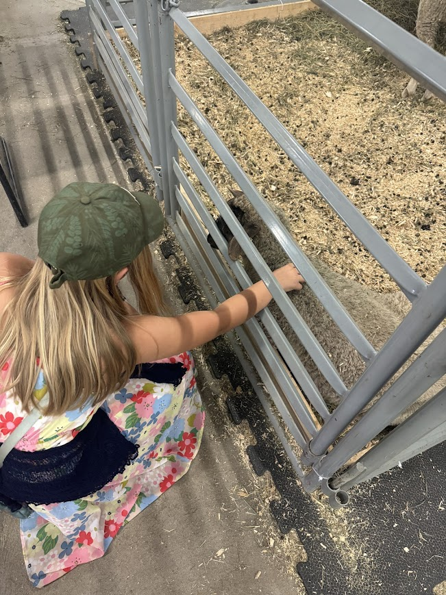 It was very hot when Mom, James, and I went to the stampede. Somebody working there told us to head to the stadium so we could see the herding dog competitions going on. We decided to go…it had air conditioning! To get through to the competition, we had to go into the agriculture exhibition building. It was a large building hosting some farm animals and games. (I got to pet a lamb!) The herding dog competition is where dogs compete to see how well and how fast they can get three sheep through a course and into a pen. We watched ten of the canines, and eight got disqualified, unfortunately. They either nipped one of the sheep or the sheep ran away just as they got them to the gate of the pen. We decided to head out. James wanted to watch a motorcycle show, so we sat at the stands waiting for it to start. A while after the show was supposed to start, we gave up waiting and checked with one of the volunteers to see if anything happened. Apparently, somebody put the wrong time on the rodeo website, and the show ended only a few minutes before we arrived. Bummer!