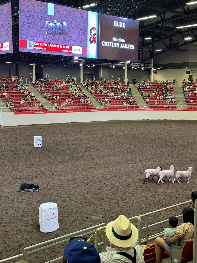 On Wednesday Mom, Abby, and I went to the Calgary Stampede, an annual fair that is one of the biggest things to do in Calgary. The train ride there was absolutely packed with people dressed in cowboy hats and boots. I felt a little out of place in my scuffed up shoes and bright red baseball cap. When we arrived and tried to get off, I nearly lost Mom and Abby in the sea of humanity. After that little scare we went and got tickets, which was actually a very orderly process for a huge fair. At the booth we scored a map, and when we looked at it, there were so many options to choose from! Stock dog competitions, food, rides, animals, motorbikes… it was all there. We decided to start with the animals. They were all stationed in separate pens inside a massive room. The smell of farm animals assaulted our group the second we went in, and Abby went straight for a group of chicks. They were very cute, with their fuzzy bodies and high-pitched cheeps, but they didn’t do much. The same could also be said for the hens and chickens. All of the animals were like this, except for a batch of piglets that were a constant blur of activity. Personally, I think that it was just a lead-in to my favorite event: the stock dog competition. The stock dog competition pits a handler and dog against three sheep. To make it to the next round, the dog needs to herd the sheep around the arena in a specific pattern before hustling them into a pen, and all this needs to be done within four minutes. It may sound easy, but it’s not - of the 10 dogs that we watched, only 2 actually managed it. In other words, only 2/10, or 20%, of the competitors that we watched made it. That’s pretty ruff… get it? 🤣
