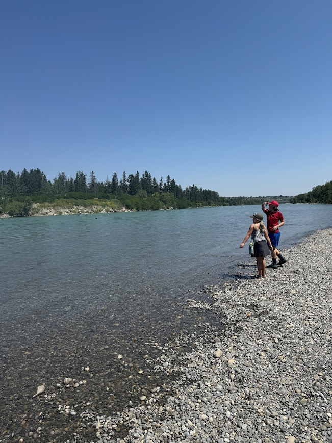 Thursday was the best day of the week by far. After breakfast, we went to a beautiful place called Bowness Park, where we found a nice spot by the river to set down our things. Once we unpacked, Barry and I tossed a football around for a while. Eventually Abby joined in, and it was a lot of fun until Barry went back to rest and chat with Mom and Jan. Abby and I went over and got some other kids to play with us, and we played Monkey in the Middle until Mom called us back to eat lunch. After lunch, we all went for a walk upriver, and found the perfect rock throwing spot! I always love throwing rocks into the water - it just feels so satisfying! Abby and I played there for a while until we had to go back to the house to get ready for dinner and pack for the plane to Vancouver.