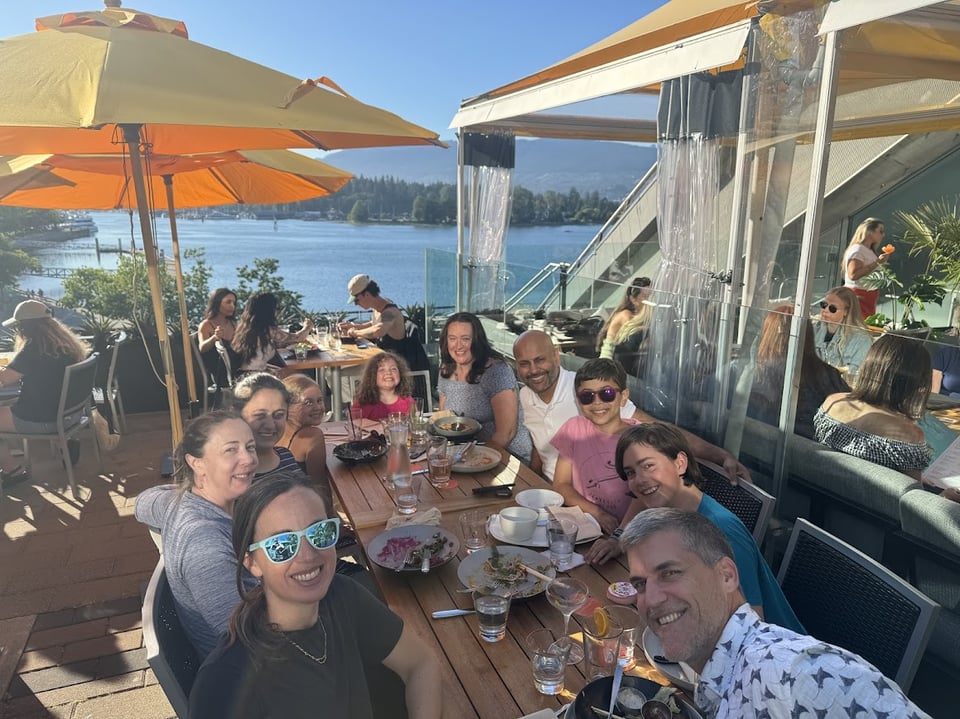 We finally met our cousins on Saturday! After breakfast, we had a little time to rest before meeting Aunt Marja, Uncle Vinit, and our cousins Zibby and Max on Granville Island. We stopped at the Public Marketplace to grab some food. While we were eating our lunch we discovered that some more relatives had arrived, so we made our way back to our hotel to meet them. Aunt Erin, Uncle Andrew, and cousin Millie drove all the way up from Seattle to Vancouver just to see us for one night! (Everyone else will be getting on a Disney cruise to Alaska on Monday, but Erin and co have to get back home.) We all hung out together for the rest of the day and even got to have dinner together. Meems and Papi were also supposed to arrive, but they missed their connecting flight because of bad weather and got delayed until Sunday morning. Even without Meems and Papi, we were lucky to have a reservation for so many people for dinner! It was a fun night.