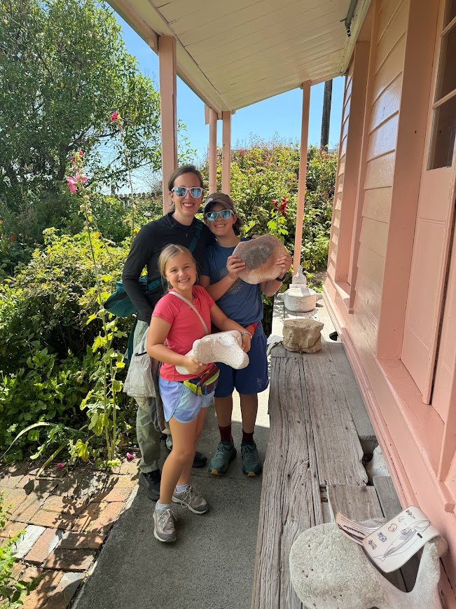 The first activity we did this week was ziplining in Kaikōura. I had been eagerly looking forward to this, but I certainly didn’t anticipate that it would be so cool! Although I was a bit frightened to head down the first one, after that it was fantastic. There were many mesmerizing views of Kaikōura and its stunning blue water as we zoomed down the cord, especially the last one. Another cool visit in Kaikōura that we made was to the Fyffe House, a whale hunter’s bright pink house built from whale bones that was turned into a mini museum. Unfortunately, it was closed, so we played a game of Horseshoe that was in the front lawn of the house and talked to a friendly couple. Luckily, a nice woman who worked there let us come into the garden and showed us the different whale bones and where they go on a whale. It was fascinating!