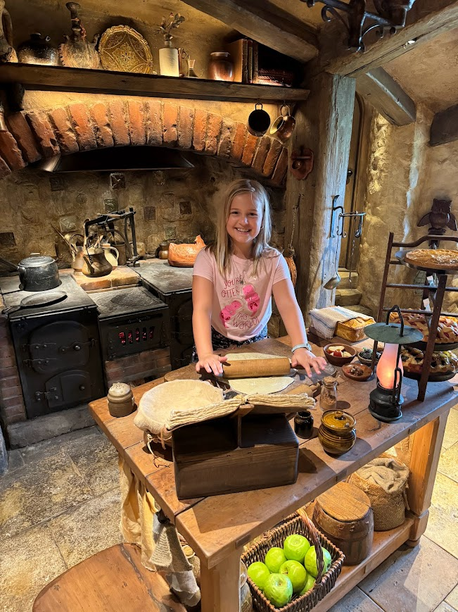 After we admired the marvelous details of the little Hobbit home, it was time to head to the Green Dragon, a tavern that everybody went to at the end. The one thing about Hobbits was the fact that, yes, they drink.🍺 A lot. Luckily, they had an option for kids (and Mom!) of Ginger Beer. After enjoying our drinks, we sadly had to go. We took the bus ride back and I got a Lord of the Rings hat at the gift shop. For anybody who likes LOTR, or beautifully detailed sets, I highly recommend this magical place!