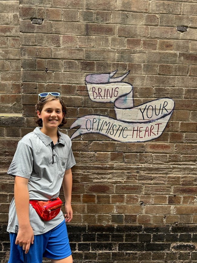 The next day the kids and I decided to try one of the free self-guided Culture Walks tours curated by the City of Sydney. There are a number of different themes, but James was definite that we should try Sydney’s Little Laneways, which promised to let us “explore the city’s laneways and minor streets, the ones the casual passer-by doesn’t see.” In that respect, the tour was a huge success, but I’d say that we had an overall-positive-but-mixed experience. On the one hand, some of the laneways are not currently thriving, so it was interesting to read their histories, but you’re still just standing in an alley. In other instances, we would turn down laneways that we never would have even noticed on a casual walk, and lo and behold there were hidden treasures of small shops and restaurants clearly known to Sydneysiders, based on the length of the lines out the door at lunchtime. We definitely saw parts of the city that we never would have found on our own, so in the end we felt that despite a few uninspiring spots we were fairly well rewarded for our efforts.
