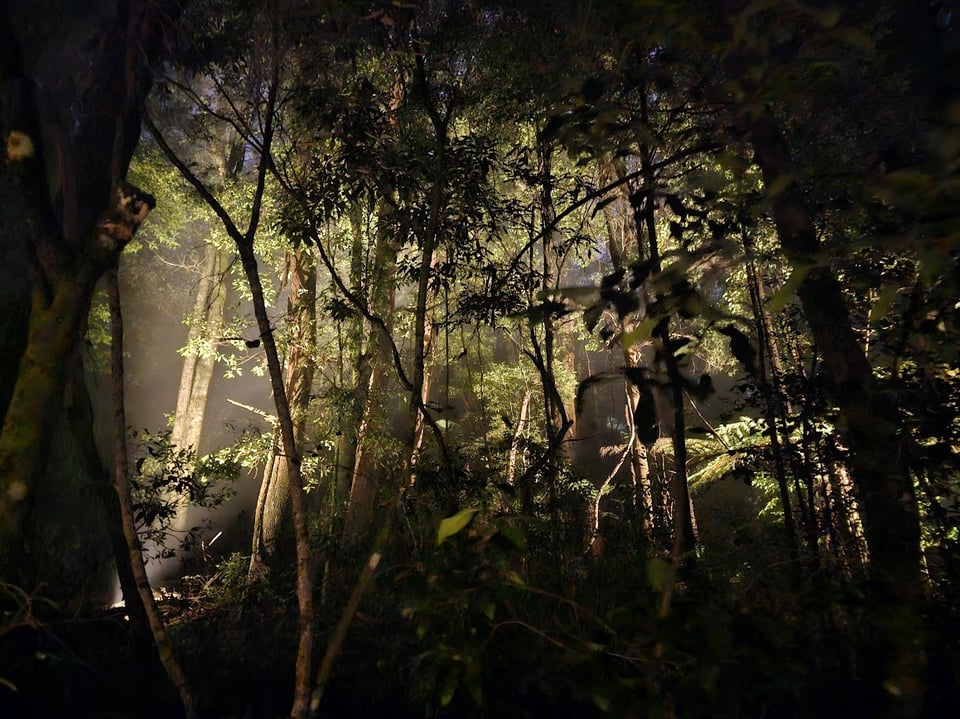 This left us a bit winded, so we checked into the motel and took a power nap. After the refresher and some dinner, we went to Katoomba falls to do the night walk. The path is lit every few feet along the handrails, with flood lights set up in some areas to shine on interesting views. A heavy mist rolled in during dinner, so it was a movie set feel walking through the shrouded forest. Going a bit further than we originally planned, we luckily made it all the way to the Cascades, which were a treat in the dark.