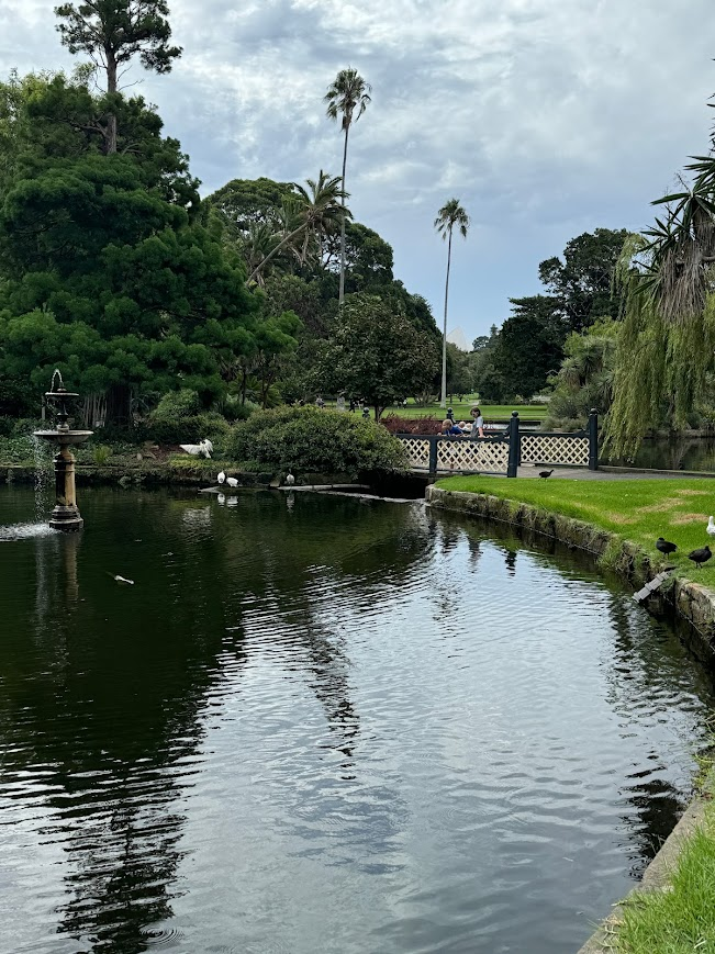 We met Sean for lunch and completely changed the tone of the day by visiting some of the most well-known sights in the city. First we walked through the Royal Botanic Gardens (free to the public, like all of the museums we had visited so far!), which were beautiful by themselves and enhanced by the fact that they are right on the harbor, so they have abundant water views and a lovely cool breeze coming in from the sea. Our particular favorite spot was The Wishing Tree, which claims to grant a wish if you walk around it three times forward and three times backwards. James pointed out that “backwards” could be interpreted either as walking the opposite way or by walking facing backwards. We decided to walk facing backwards, and thanks to the rather large circular path around the tree the ritual took a bit longer than we expected, but we told ourselves that the possibility of granted wishes was worth the effort. Fingers crossed!