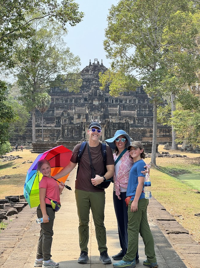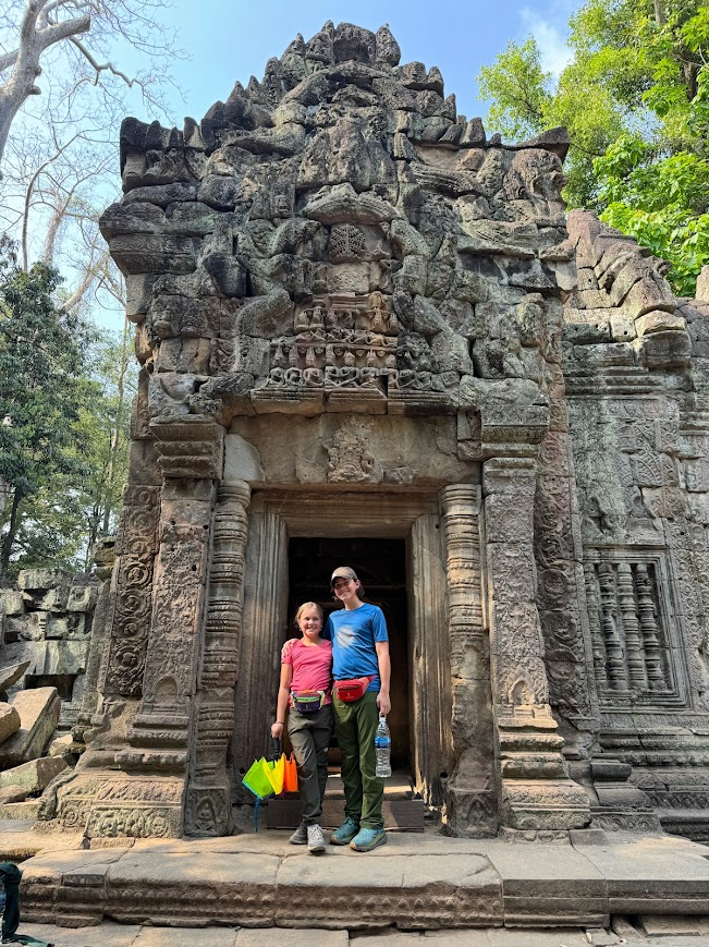 Our experience was a mix of wonder and interest, tempered by heat. Though we are here in March, the temperatures are still in the 90s with very high humidity. This led to us having to convince each other to keep going to one more temple, despite the desire to return to the pool and AC. I’m glad we did, as walking toward the temple with its distinct skyline is a one-in-a-lifetime experience. It is evident why it’s a pilgrimage site for many of faith. The intricate carvings and the expansive bas-reliefs that describe various myths, the most famous being the Churning of the Sea of Milk, are truly impressive as you walk around the site.