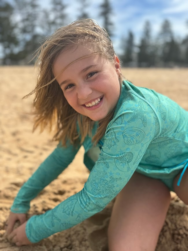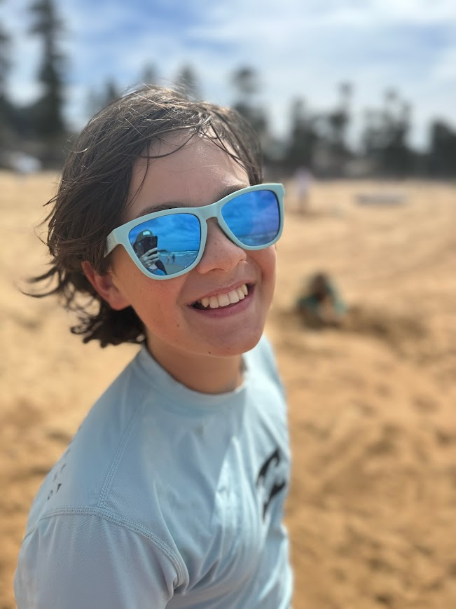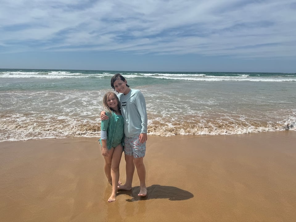 When we got to the beach, James & I immediately wanted to splash in the waves. I ran down the beach first, the soft sand crunching beneath my feet. I jumped into the first wave that came, the cool water hitting my legs. James came after me, giving even more of a splash.