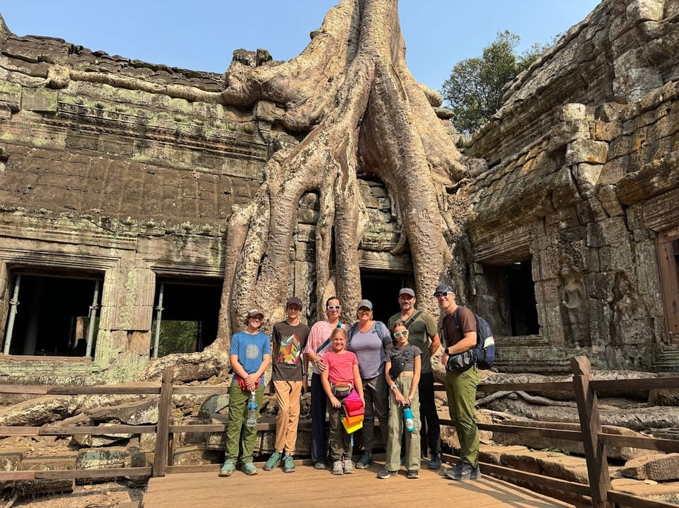 After a couple of hours in Angkor Wat, we continued on to Angkor Thom, which was much more of a wandering experience, as the city complex has multiple temples spread around, of which we only visited two. Bayon temple was the most memorable, as the king ordered the creation of 54 faces in the temple, to represent the 54 regions of the Khmer empire at the time, and that the capital was watching over them all. Regardless of where you are in the temple, you will see at least one face looking out from above. Following lunch, we made one last temple visit to Ta Prohm, which was used for the Tomb Raider movie with Angelina Jolie. Here the temple has been overrun by trees, with the roots pushing entire parts of the temple walls apart. This was probably the most fun for all of us, as it really felt like you were an adventurer stumbling upon ancient ruins.