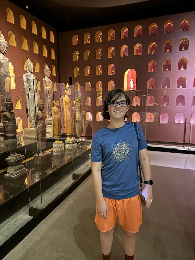 On Friday we visited the Angkor National Museum and in the afternoon were joined by friends from CA. The Pauls are a family who have also taken some time away to explore the world. In fact, they have been gone since early August and are doing a full year of travel, so their range of locations and experiences far exceeds ours! It’s a fun change to be exploring with friends, and the four kids have been having a blast playing together. For Sean and I, it’s nice to have other adults to chat and make decisions with. That first night we all walked through town to a tucked-away restaurant and were happy to try our first real Khmer food. Some of the dishes included red ants, and the waiter brought us some on a small plate so that everyone could try them. The kids were initially reluctant, but we all decided to give it a go and thought they tasted fine, if a little bit sour!