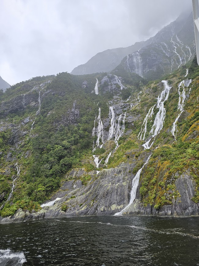 #3: (Milford Sound, NZ) The ferry we took through the sound! Although the wind and rain were blowing hard, all the shimmering waterfalls and thriving rainforests were stunning. It was a beautiful family memory, especially for Mom, who did the same thing with her parents all those years ago when she was a child.