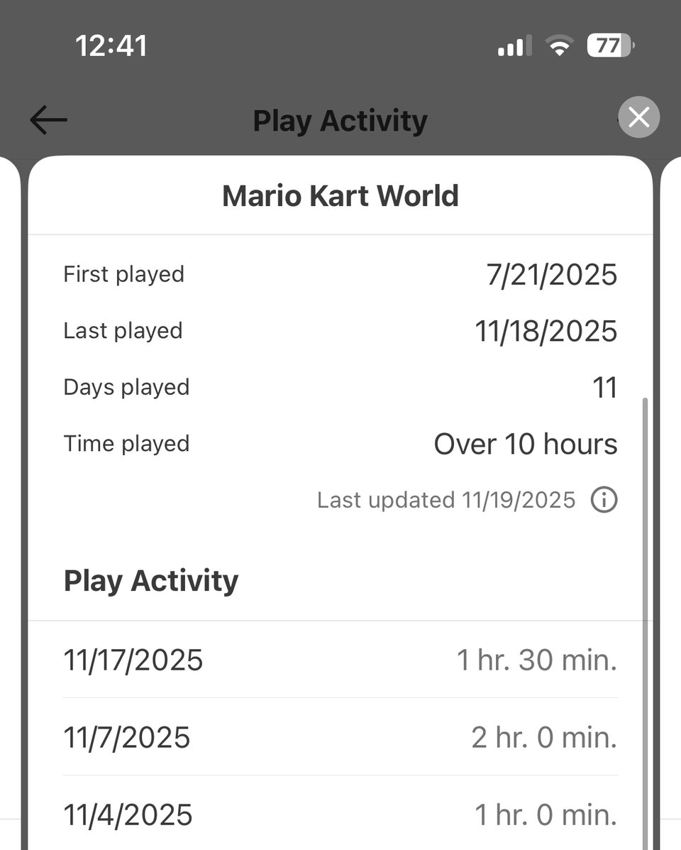 Surprisingly, the Nintendo Switch didn’t offer any fine-grained play activity data… until the Nintendo Store app was released a few weeks ago with high granularity play activity data! Now all I’d need is to export the data somehow.