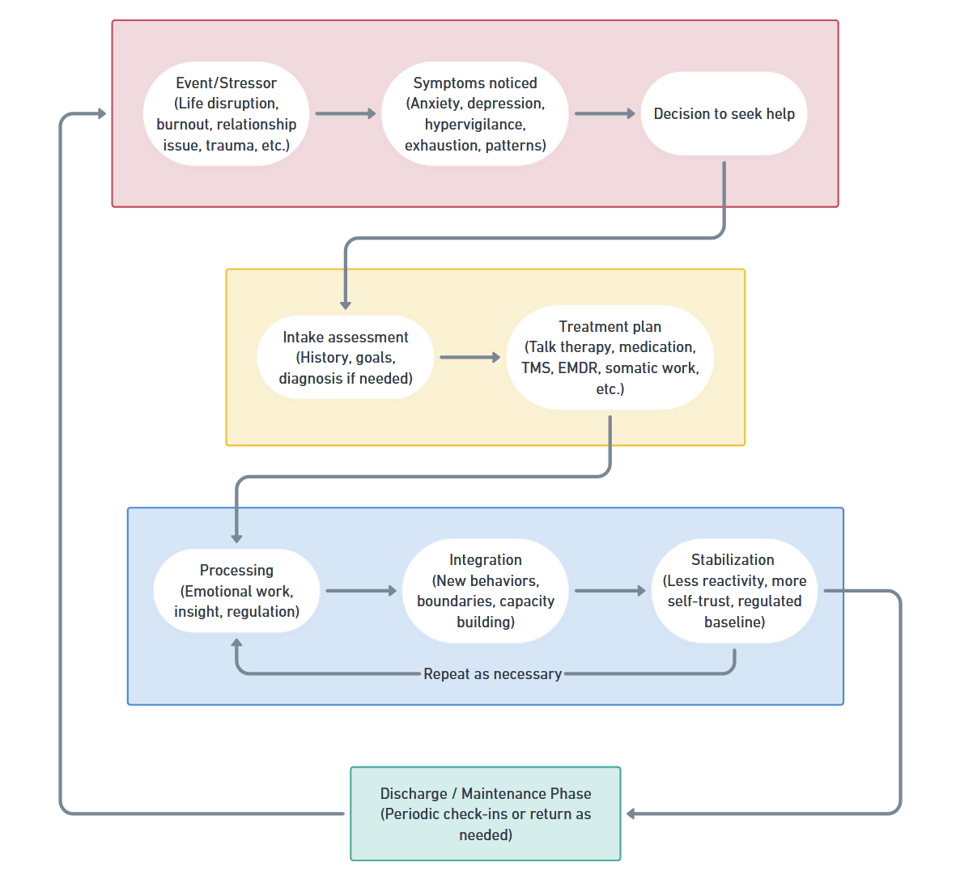 The same is true here. The session is where you learn and practice; the real change happens in how you live between sessions. If you stay the course and consistently do the work, there comes a point where you’re standing on your own again because you rebuilt the strength yourself.