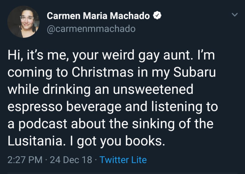 It should come as a surprise to no one that I am the annoying relative who gives you books for the holidays. Which reminds me, ‘tis the season for one of my all-time favorite tweets:
