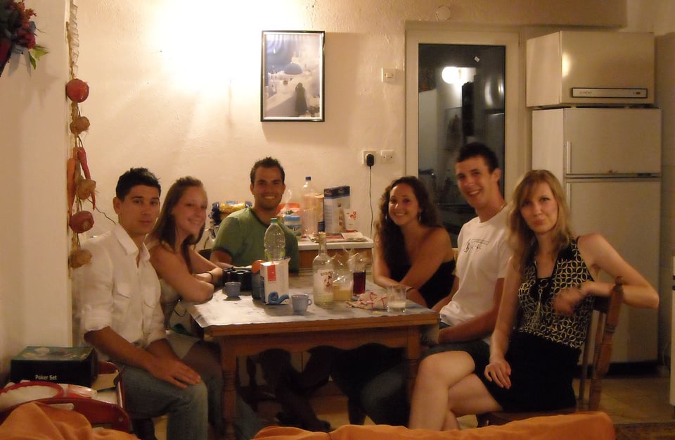 One night we decided we were going to travel (somehow? by bus?) to a larger, neighboring town to go to the diskoteka. There were ten or 12 of us across 3 bedrooms, one toilet, one mirror, and no air conditioning, so beautification rituals for the club were a process. One of the girls, a high femme, was buckling under the pressure and definitely taking out on her boyfriend, who we’ll call V.