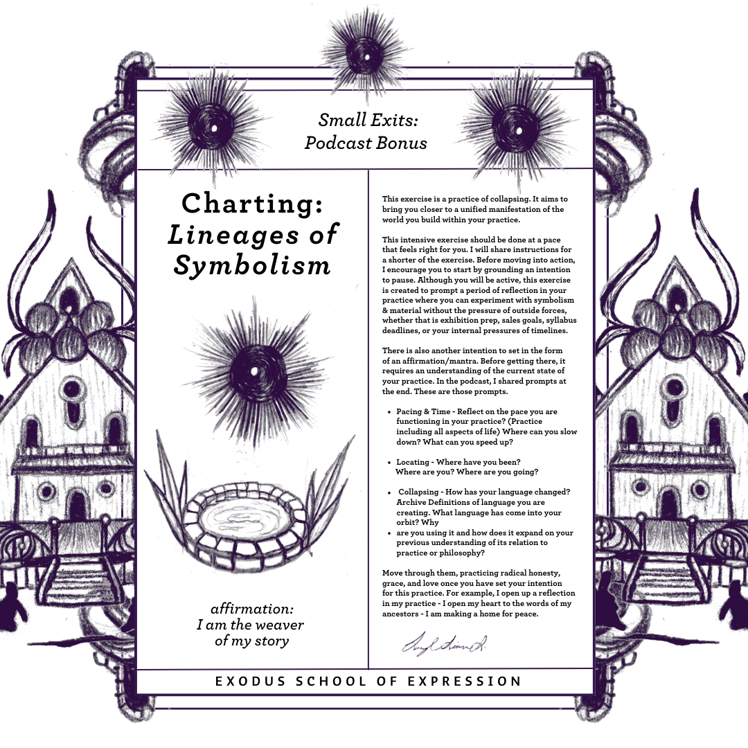 Explore the depths of self-expression and symbolism in your artistic practice with Charting: Lineages of Symbolism the first episode of Small Exits' captivating bonus content. This immersive exercise is a journey of collapsing, aimed at unifying the world you create within your creative process.