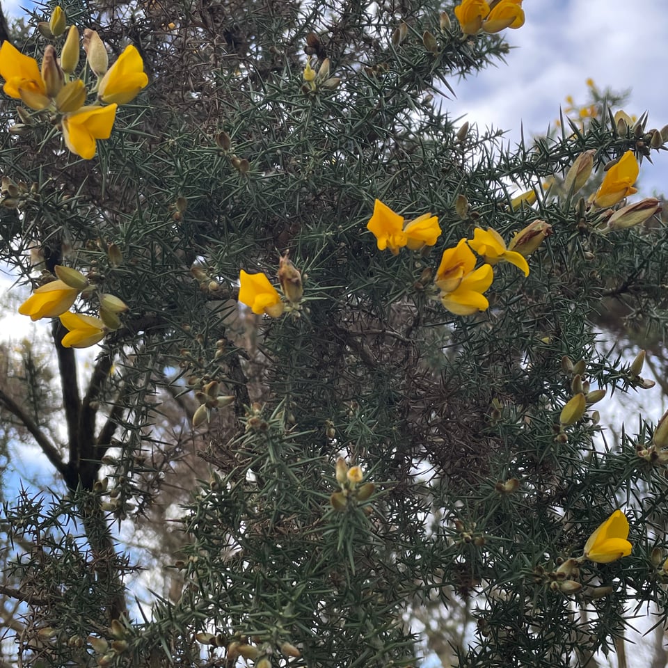 Lately I’ve been noticing the gorse blooming even more, although it blooms in cycles all year. The presence of the tiny yellow buds and their rich coconut essence seem to be waking up the branches even more. The trees still mostly barren without their leaves, but the prominent thorny bright bushes feel like a little peak into the doorway of springtime.