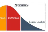 The Framework: Consumer adoption leads; enterprises follow. AI is stalled at the classic chasm of Diffusion of Innovation fame, which we update for the Age of AI. Architects and Catalysts race ahead. Integrators wait for workflows that actually work in their hands. Conformers need policies and proof. Legacy Loyalists are dug in.